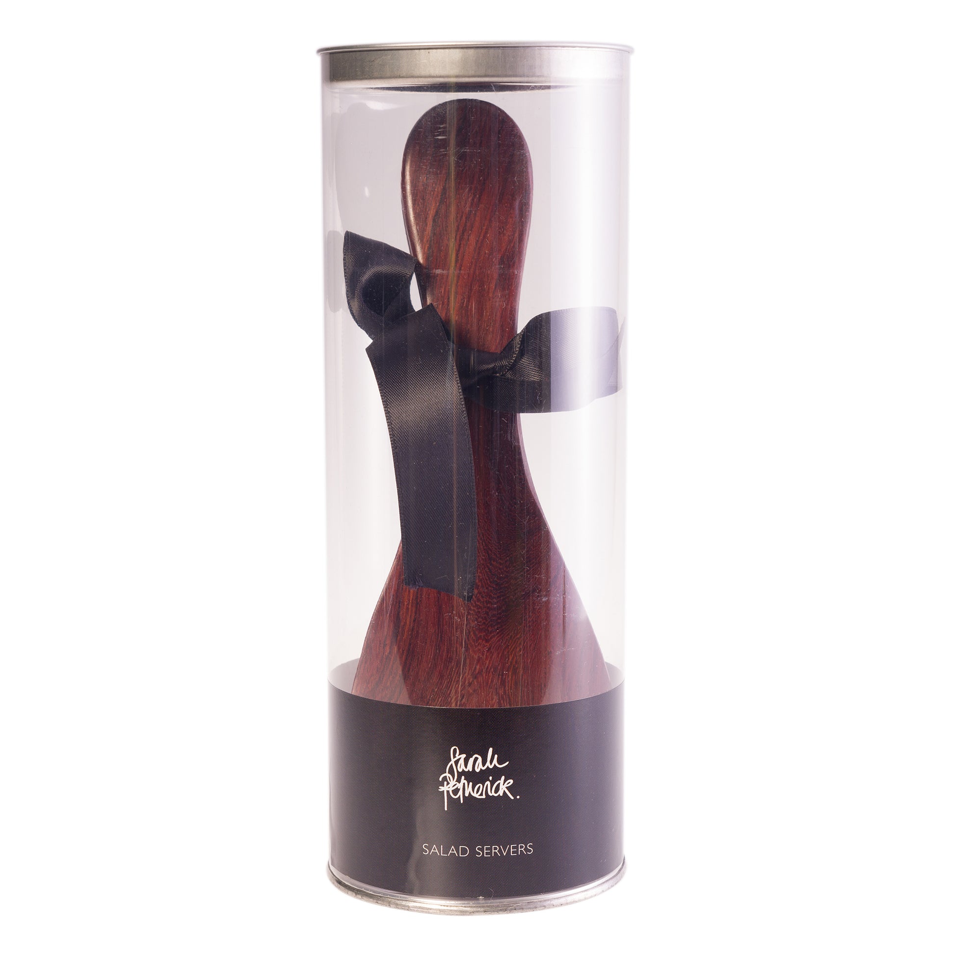 A wonderful pair of short paddle shaped rosewood salad servers, beautifully packaged ready to gift.