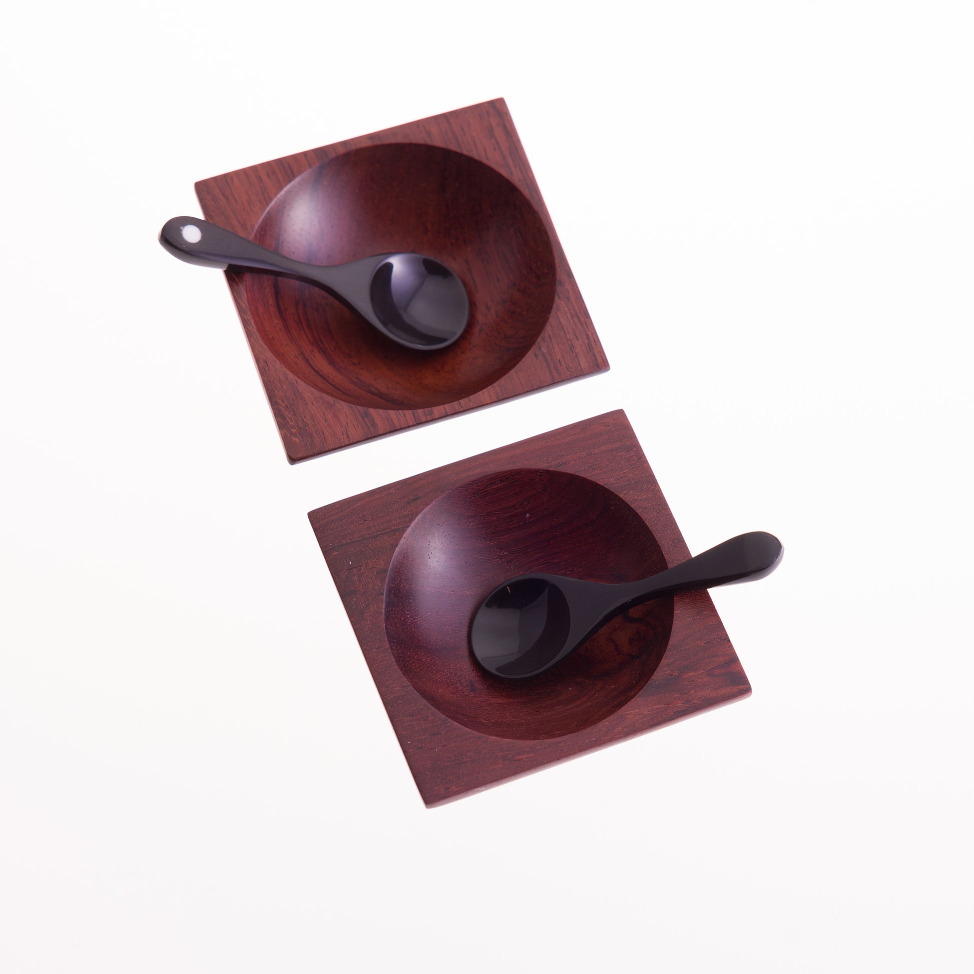 An exquisite square salt & pepper pinch pot, made from rosewood.