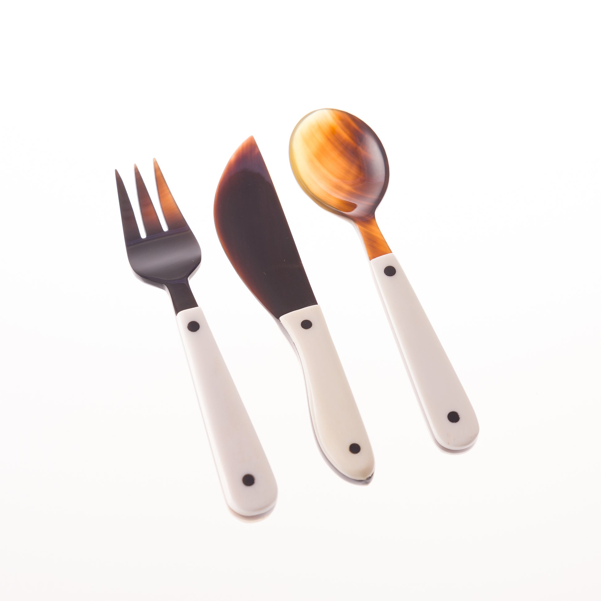 Just 12cm long, this horn spoon, fork and knife is a great cutlery set for children. Easy to grip and soft in the mouth.