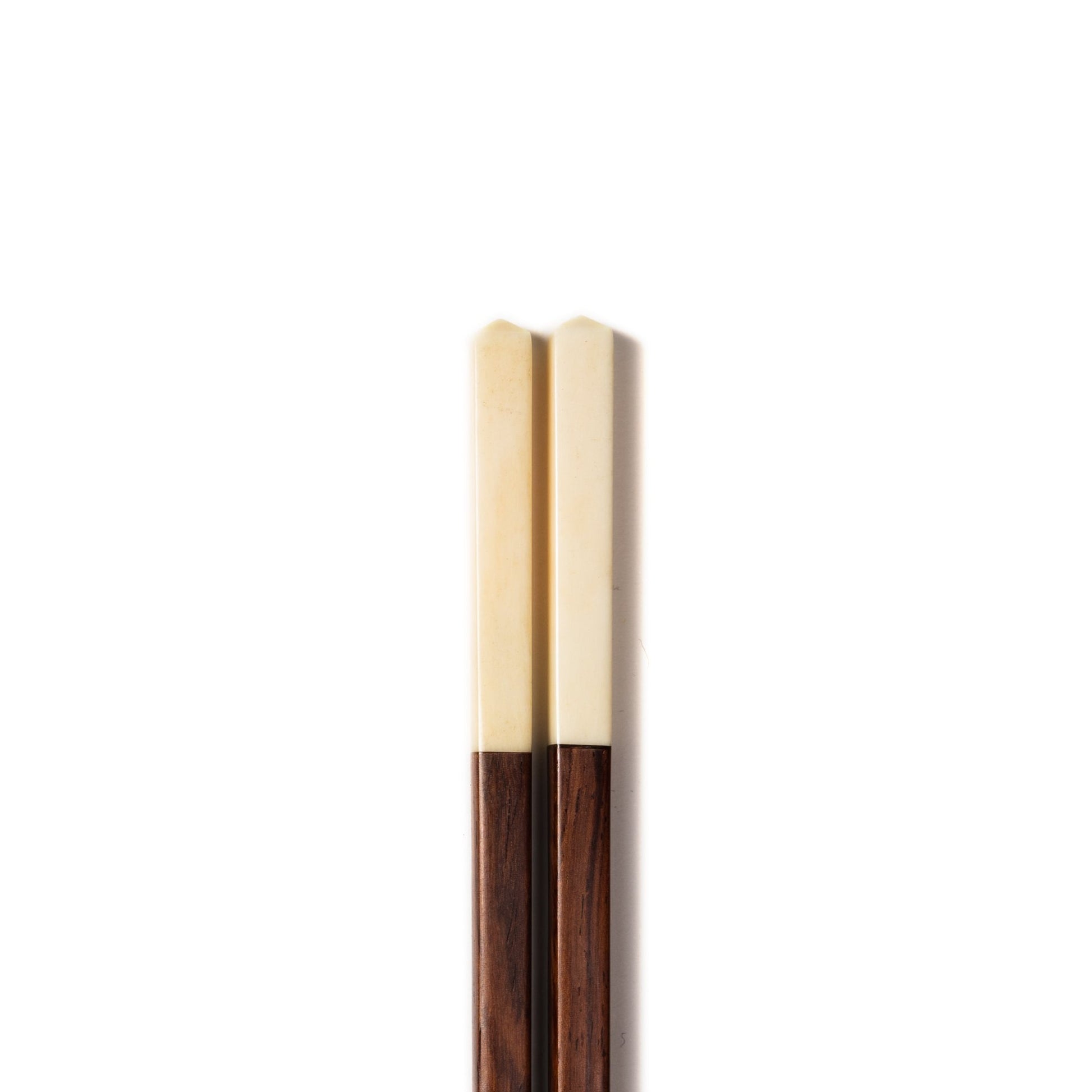 Red wood chopsticks with bone tip (2nd from right in the image below). Tip length 5cm.