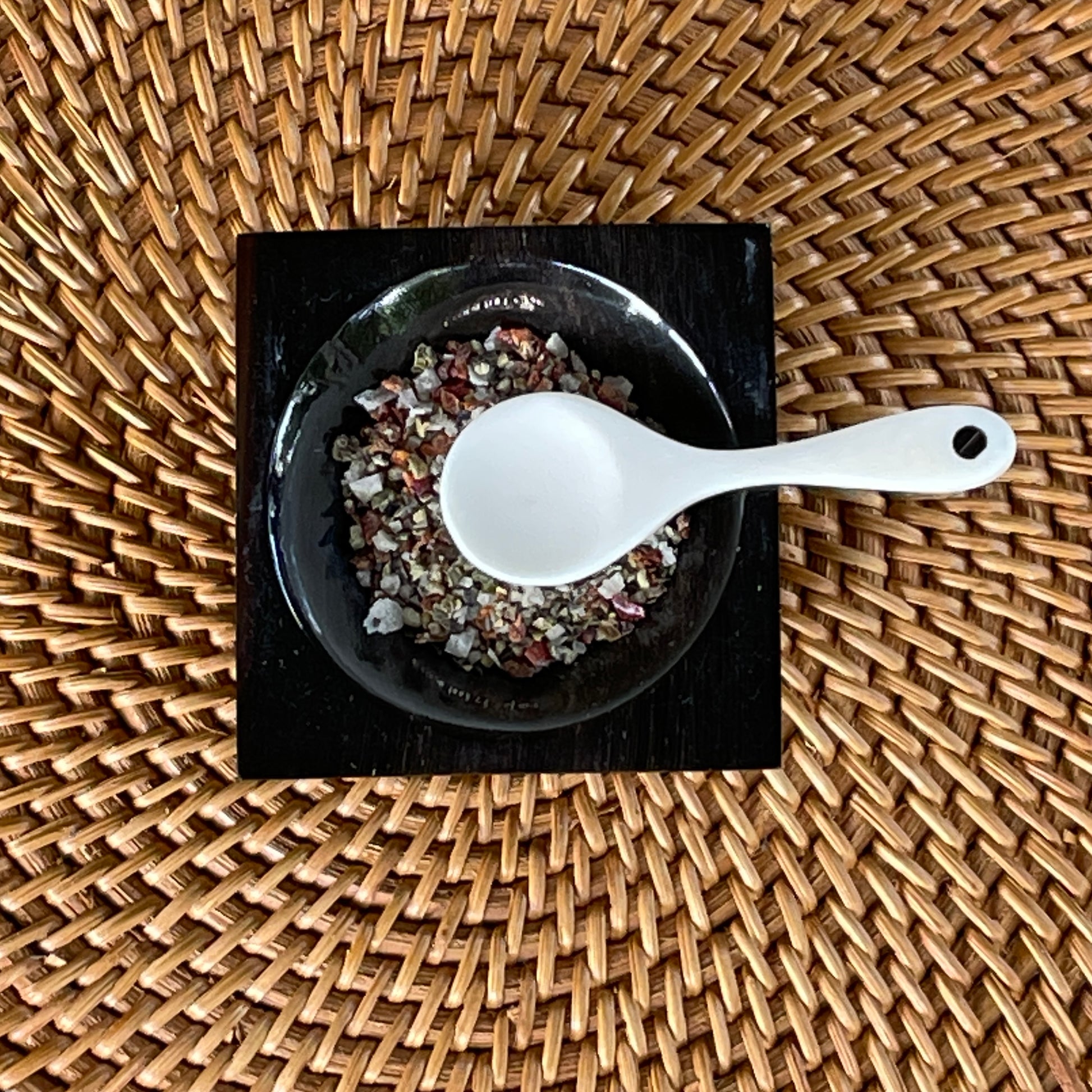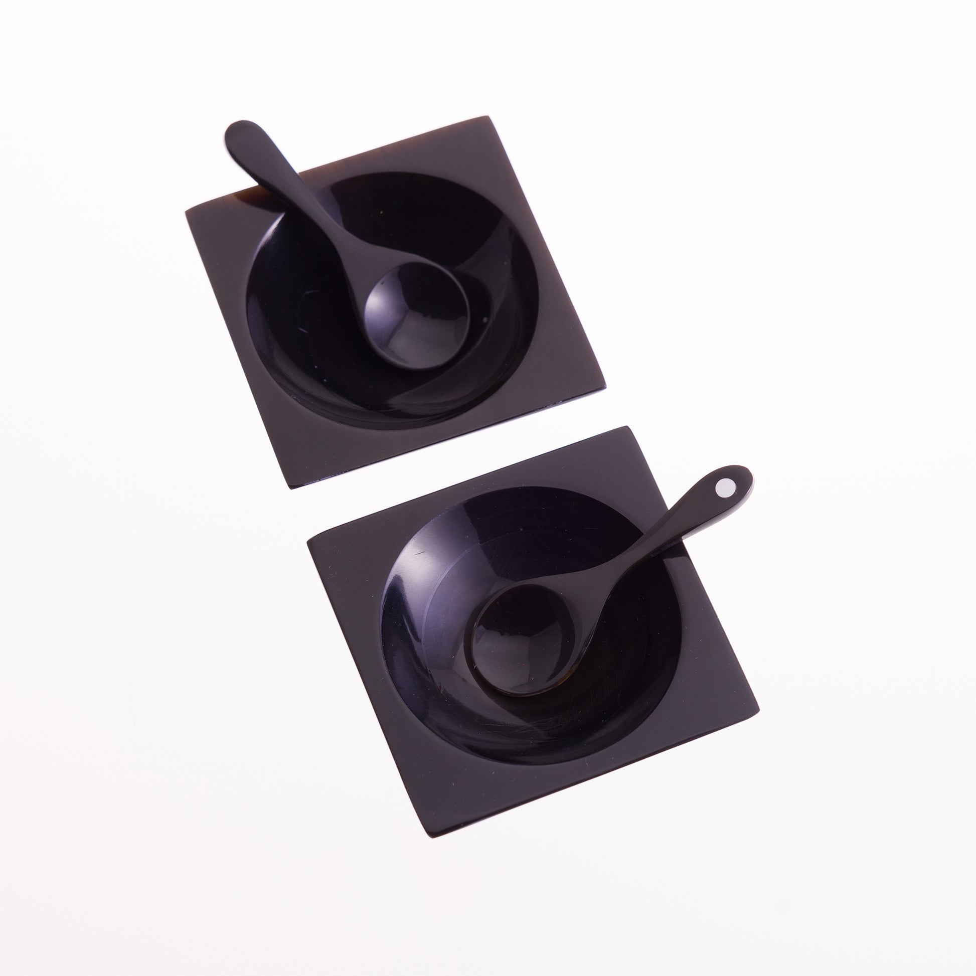 An exquisite square salt & pepper pinch pot, made from water buffalo horn.